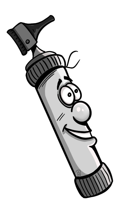 otoscopio con ojos y boca, simpático que los niños puedan colorear mientras